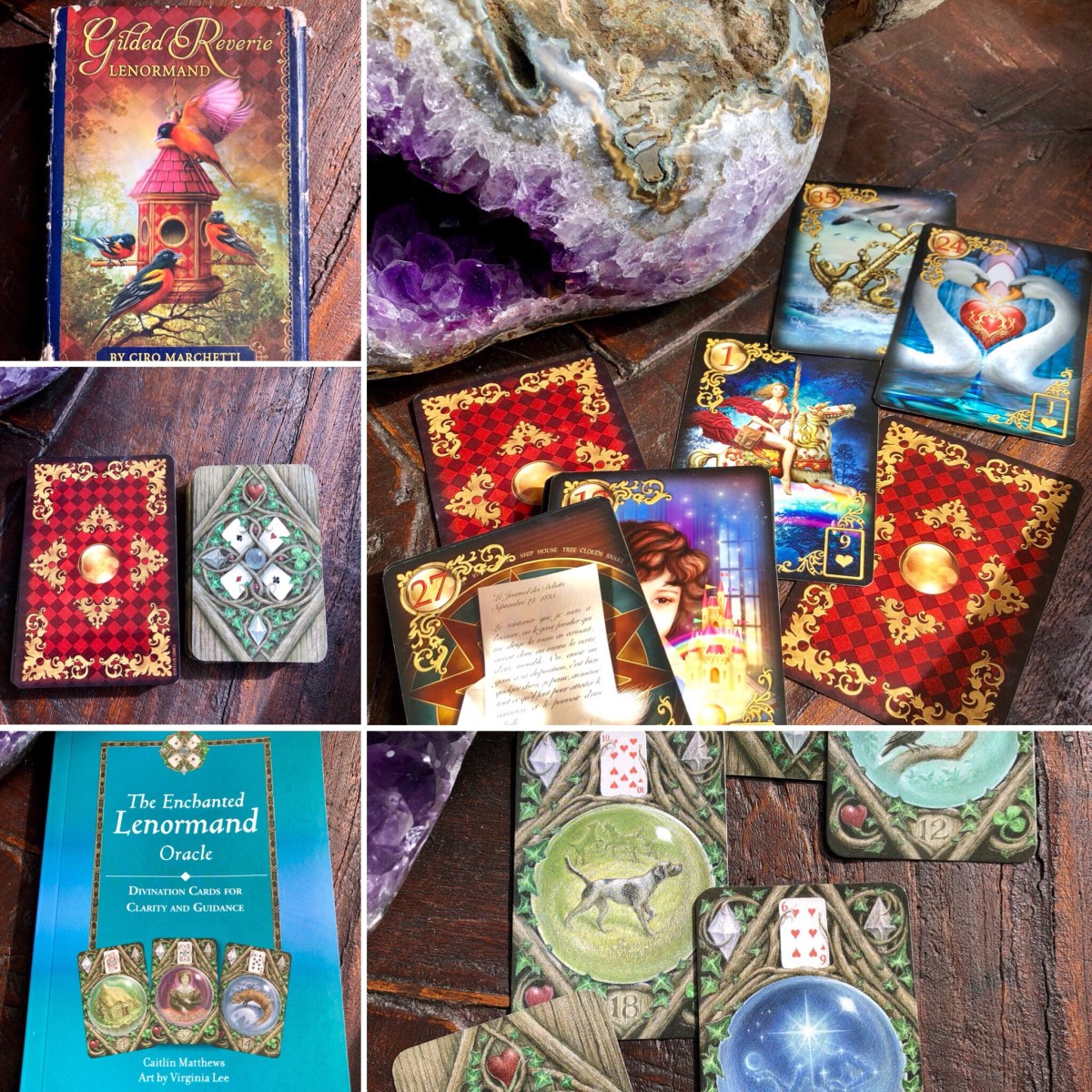 The Gilded Reverie Lenormand Deck by Ciro Marchetti which has stunning images. A new extended edition has now been published with 8 new cards added to the deck. This is one of the decks we will use on the day.